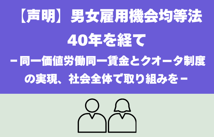 【声明】男女雇用機会均等法40年を経て〜同一価値労働同一賃金とクオータ制度の実現、社会全体で取り組みを〜